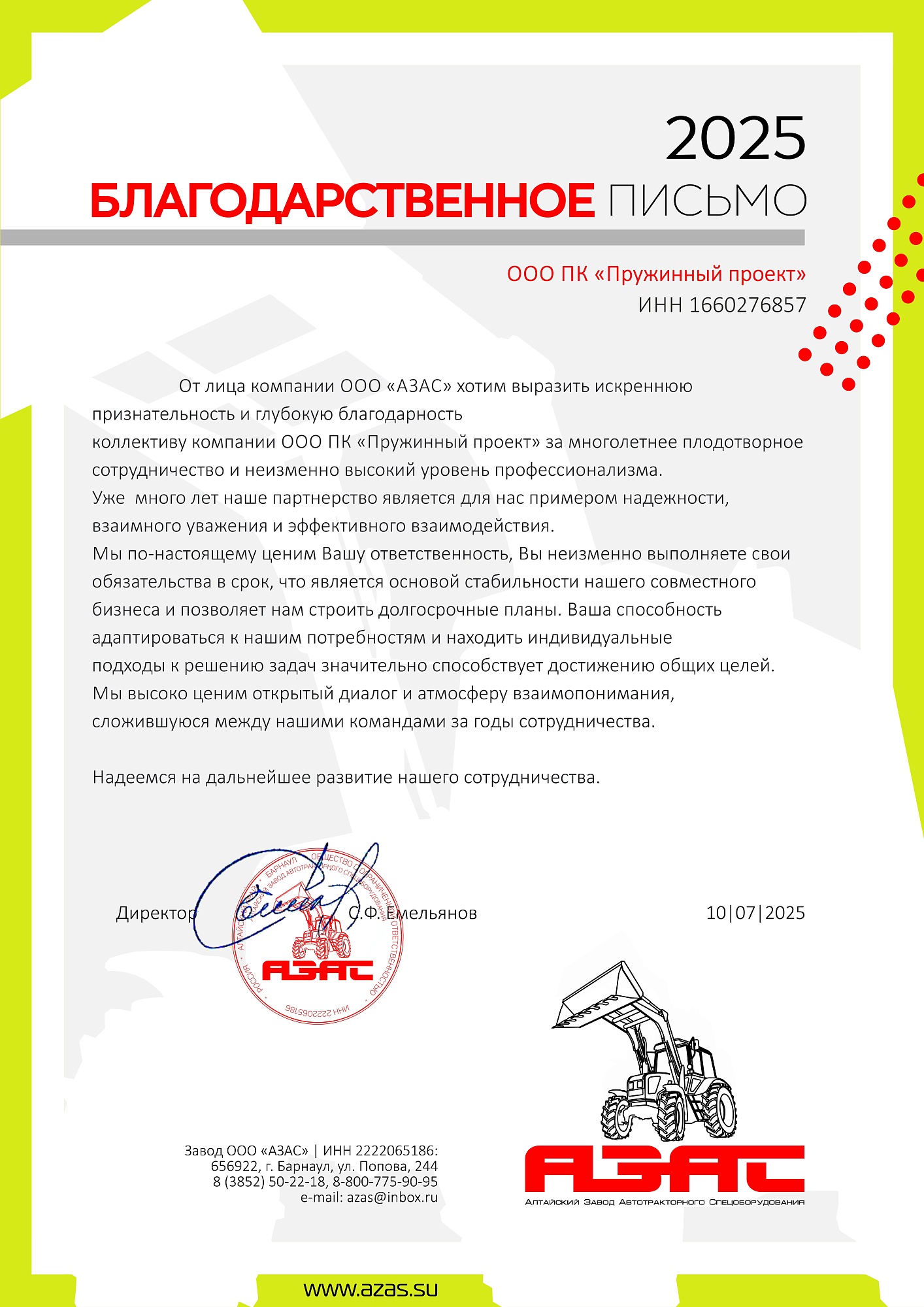 Признание нас как надёжного поставщика и партнёра мотивирует нас к дальнейшему развитию. А регулярное участие в отраслевых выставках, позволяет быть в курсе событий всех ключевых отраслей промышленности, и даёт возможность личного общения с клиентами.
